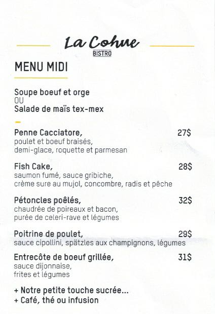 Lieu : Bistro La Cohue, 3440, chemin des Quatre-Bourgeois, Québec, Qc G1W 2L3